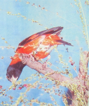 En los bosques secos de los Estados Falcón, Lara y Yaracuy, de Abril a Junio, también florece el Indio Desnudo (Bursera simaruba). Se ha visto a Cardenalitos libando néctar en las flores de este árbol. En Mayo de 1980, el autor vio a una pareja peleándose con un macho de Tucuso de Montaña (Cyanerpes cyaneus), por las flores de un Indio Desnudo. A este árbol en la época de floración, concurren además muchos otros pájaros de las familias de los Tráupidos y de los Ictéridos. En la cumbre de los cerros calizos del Distrito Zamora del Estado Falcón, donde existen manchas de bosques primarios subhúmedos, con abundante Barba de Palo, crece una planta llamada Canilla de Venado (Acalpypha carpinifolia), cuya inflorescencia es parecida a un gusano de unos 8 a 10 cm. de largo por 2 a 3 mm. de ancho, alrededor de la cual se encuentran unos pequeños frutos de sabor agridulce, que el Cardenalito come y que al parecer le gusta mucho. La época de floración de esta planta se da entre Marzo y Mayo. A mediados de Abril de 1981, el autor observó en dos sitios diferentes, pero de la misma región del Estado Falcón, dos Cardenalitos comiendo Canilla de Venado. La alimentación en cautiverio, es de primordial importancia para este pájaro, desde su captura hasta cuando se haya adaptado a las nuevas condiciones dadas por el hombre, las cuales varían ampliamente de persona a persona, de un lugar a otro y sobre todo, de un país tropical a otro, donde las condiciones ecológicas sean completamente diferentes. El régimen alimenticio varía también según la época del año, así en los meses de Enero a Junio la alimentación debe estar en función de su época de reproducción. Durante ésta se le dan los siguientes productos: una mezcla balanceada de alpiste, 65%; colza, 10%; semilla negra o Niger, 10%; nabina, 5%; linaza, 5% y cañamón, 5%. Luego en los meses de Febrero a Mayo, se recomienda empezar a darles comida blanda y durante los últimos días de incubación de la hembra se acostumbra suministrarle una pequeña ración de trigo germinado, lechuga, pimentón y manzana. También es indispensable que tengan a disponibilidad pequeñas porciones de insectos, como por ejemplo, cultivos de gusanos de la harina (Tenebrio molitor). Estos en lo posible deben ser suministrados diariamente, como fuente de proteínas indispensables para la buena crianza de los pichones. Al agua de beber, debe agregársele pequeñas dosis de un complejo vitamínico. Durante la segunda semana de haber nacido los pichones, es recomendable ponerles un coccidiostato en el bebedero, producto que sirve para prever la coccidiosis, enfermedad muy frecuente durante los primeros días del nacimiento. Después de la primera nidada y hasta la segunda del mismo año, se debe seguir lo anteriormente dicho, recordando que al mediodía y en casi todo el período de reproducción, se le debe colocar una bañera con agua limpia, la cual debe ser retirada para que continúen bebiendo el agua vitaminada. Durante todo este período deben tener hueso de jibia -rico en calcio- y grava fina que les ayudará a la trituración de las semillas. De Julio a Octubre, después de la nidificación, la alimentación debe ser variada. Se sugiere continuar con la mezcla anteriormente indicada, hasta cuando los pichones completen la adultez; además se debe agregar germen de trigo azucarado y continuar vitaminando el agua. La alimentación en los días antes y durante la época de muda es básica y fundamental para todos los pájaros y en especial para el Cardenalito. Es recomendable que sean bien alimentados para que se encuentren sanos y fuertes cuando lleguen a este período. Si se cumple esto, casi no existirán problemas y la muda empezará y terminará sin mayores dificultades. De lo contrario, es probable que se presente una muda patológica, o sea, cuando los pájaros permanecen durante casi todo el día triste y somnolientos, apáticos, sin apetito y con períodos febriles, lo que se manifiesta con un embolamiento -plumaje erizado-, ojos semice-rrados, y por lo general con la cabeza metida debajo del ala. En estas condiciones están predispuestos a contraer muchas enfermedades. Se observa así mismo que estos pájaros enfermizos permanecen mucho tiempo en los comederos, dando la impresión de que estuvieran comiendo mucho, y es todo lo contrario. Si se les mira con detenimiento, se comprobará que dichos pájaros buscan y rebuscan dentro de las semillas algo que no encuentran, razón por la cual permanecen tanto tiempo encima de los comederos. Probablemente lo que buscan son alimentos ricos en proteínas y vitaminas indispensables para este complejo proceso de la muda. Dé esta manera, lo que en libertad es un proceso natural, excento la mayoría de las veces de problemas patológicos, en cautiverio, la muda se transforma en un estado crítico y complicado, que en un alto porcentaje de los casos los lleva a la muerte. Si se toman en cuenta las sugerencias anteriores, se asegura la sobrevivencia y la procreación del Cardenalito en cautiverio. Lo contrario representa una pérdida de tiempo y, sobre todo, de valiosos ejemplares que podrían permitir la perpetuidad de la especie en Venezuela. Sin embargo, cuando la muda patológica se haga presente en un criadero, es necesario sobrealimentar los pájaros de la siguiente manera: complementar la mezcla de semillas aumentando la dosis proteica y adicionando en el agua productos químicos que contengan aminoácidos y las vitaminas A y D El berro y los tallos tiernos de alfalfa, deben dárseles diariamente, ya que son ricos en proteínas y en hierro. Además, es necesario prepararles una pasta blanda que contenga: pan de trigo rallado, leche de polvo, germen de trigo, sales minerales en dosis adecuadas, unas gotas de aceite de hígado de bacalao y miel de abejas. Muchos Cardenalitos enfermos, cuidados de este modo, llegan a sobrevivir, pero por lo general son pájaros débiles y propensos a adqui